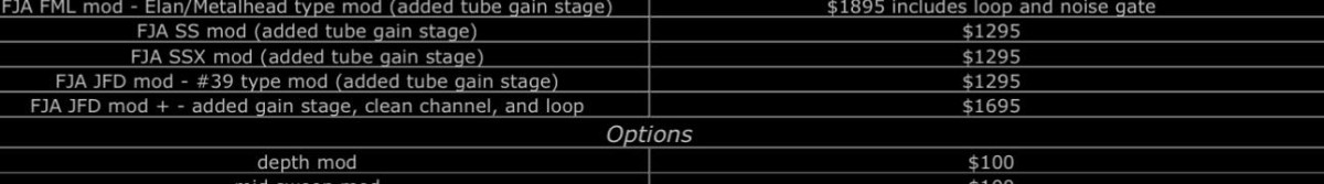 1.AMP MODS- 2.MARSHALL MODS- 3.FJA JFD mod - #39 type mod (added tube gain stage)-