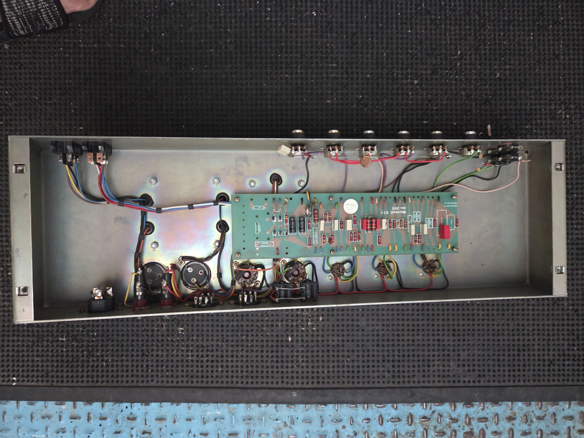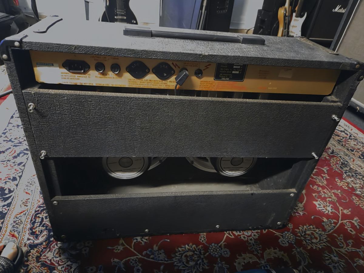 Modelo 4104 de 50w de 1983, entradas verticales de antes que marshall redujera costes de fabricación mecanizado el montaje de la electrónica