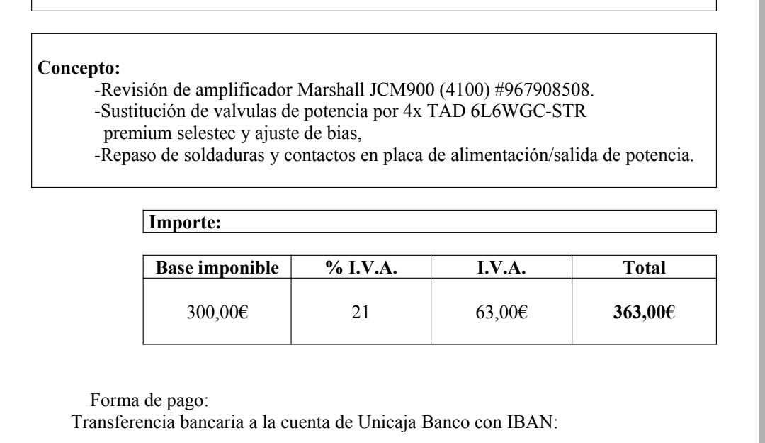 Cabezal Marshall JCM 900 de 100W en muy buen estado, tiene las 4 válvulas de potencia nuevas y se le ha hecho una revisión completa (factura) , tiene dos canales con volumen, gain y reverb independientes, interruptor de reducción de potencia y loop de efectos, se entrega con Flighcase y pedal de cambio de canal........suena como un cañón!!!!!