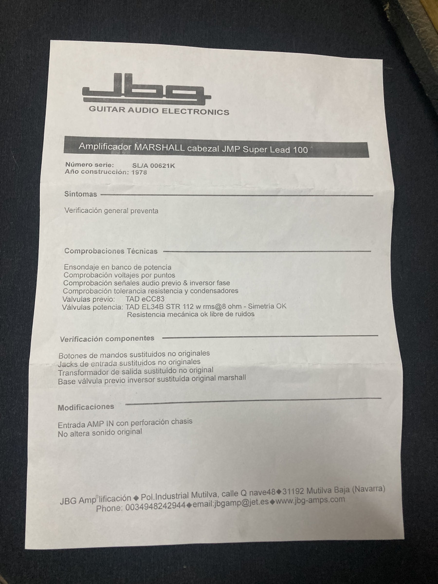 Se vende Marshall jmp mkII master model lead 100w a válvulas modelo 2203 año 1978
