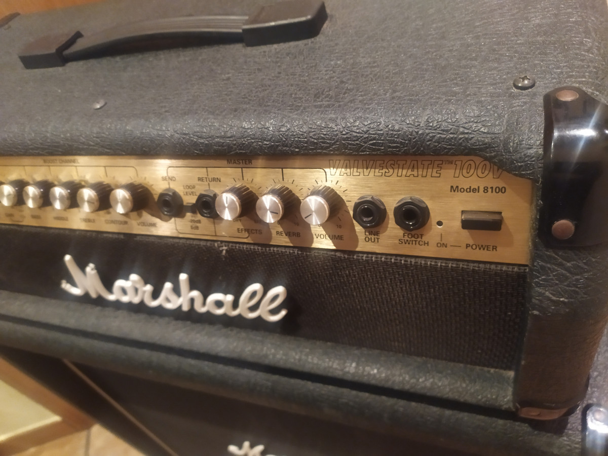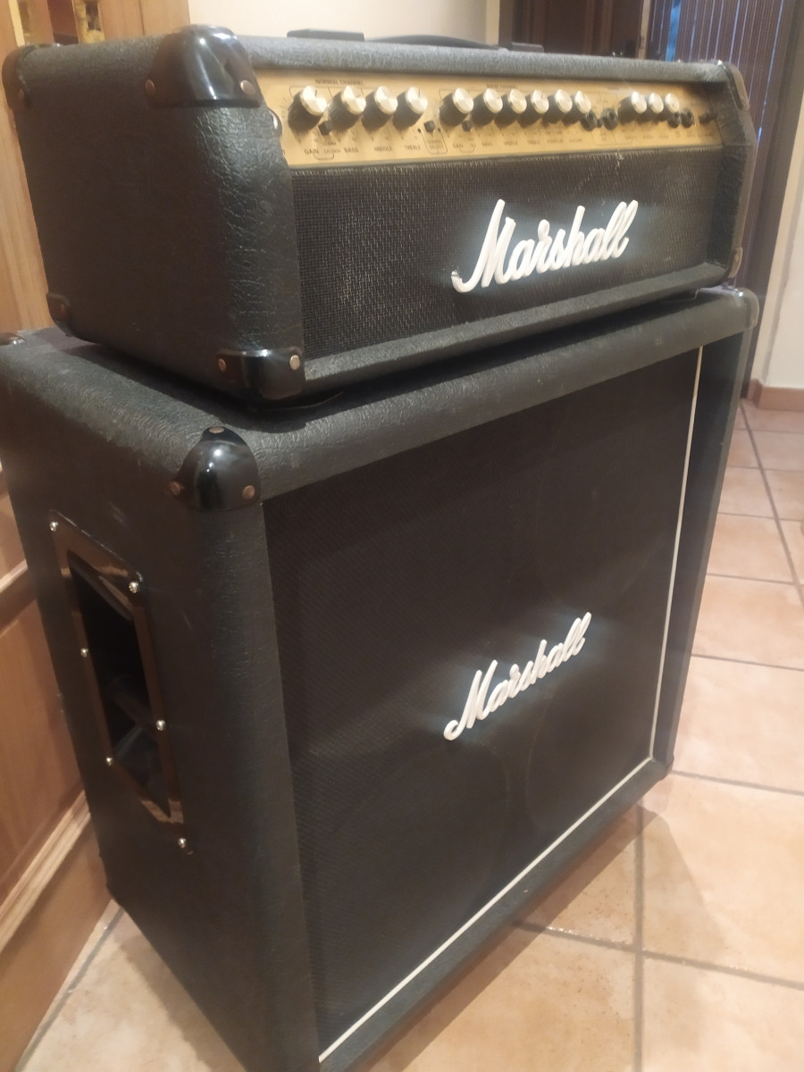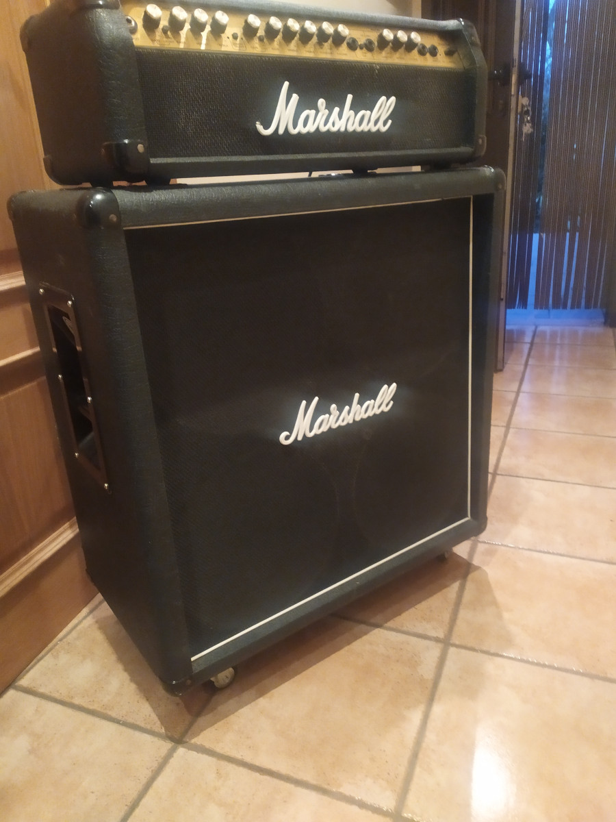 Cabezal y Pantalla del Mejor Válvestate que ha sacado Marshall, Sonido Redondo y Cálido para tocar Rock y Metal, completamente revisado y a toda prueba, incluyo Pantalla de 4 x 12, Sonido y volumen para tirar un edificio y a la vez buen sonido para tocar en casa pues al ser de transistores con válvula en previo puedes ajustar el volumen a la perfección.670412750