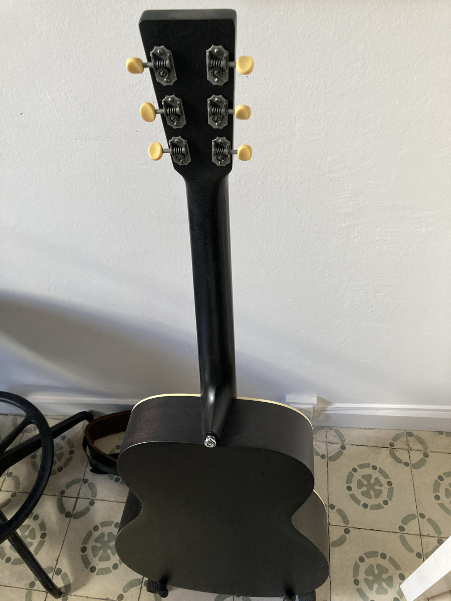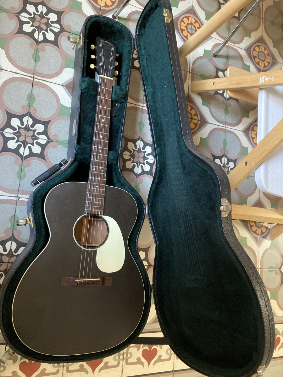 Copio de MusicStore: “Para producir un sonido equilibrado, el fabricante utiliza una tapa de abeto de Sitka para la construcción, que está equipada con un Scalloped-X-Bracing que permite un desarrollo rápido y perfecto del sonido. El fondo y los aros de caoba complementan a la perfección el sonido con cálidas frecuencias graves y también proporcionan una saturación en toda la zona. Además, la 000-17 convence por su fácil manejo, que se debe, por un lado, a su diseño compacto y, por otro, a su corto cuelloSelect-Hardwood. El mástil está equipado con un diapasón de palisandro que, en combinación con un perfilModified-Low-Oval, ofrece una sensación muy sensible en los 20 trastes. Una incrustación compensada en el puente y una cejilla de hueso de 44,5 mm de ancho proporcionan una entonación limpia en la corta longitud de escala de 632 mm.”