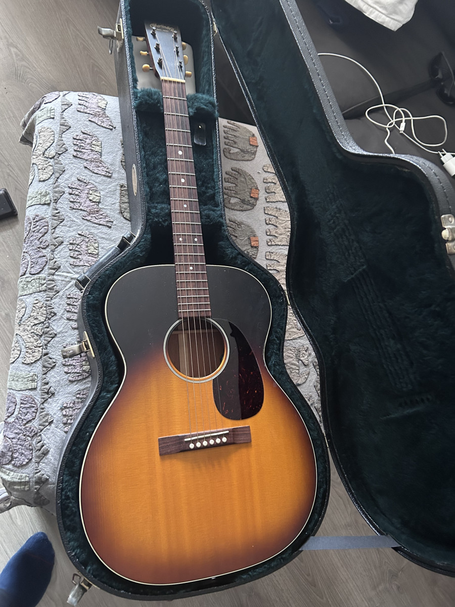 Vendo esta fantástica acústica en Whisky Sunset. Como ocurre con algunas Martin, se despegó el binding y fue pegado de nuevo. La guitarra está nueva y suena de lujo. No quiero cambios. Venía de serie con un prevío fishman que suena muy bien. Es como esta https://www.thomann.es/martin_guitars_000_17e.htm
