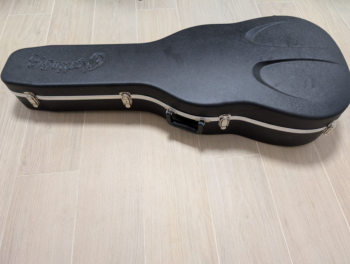 Satin, amber burst, with LR Baggs pick up and hard case. I've played this beautiful guitar just a few times. It's only a few months old, I bought it from a shop in Granada and have the original receipt.
