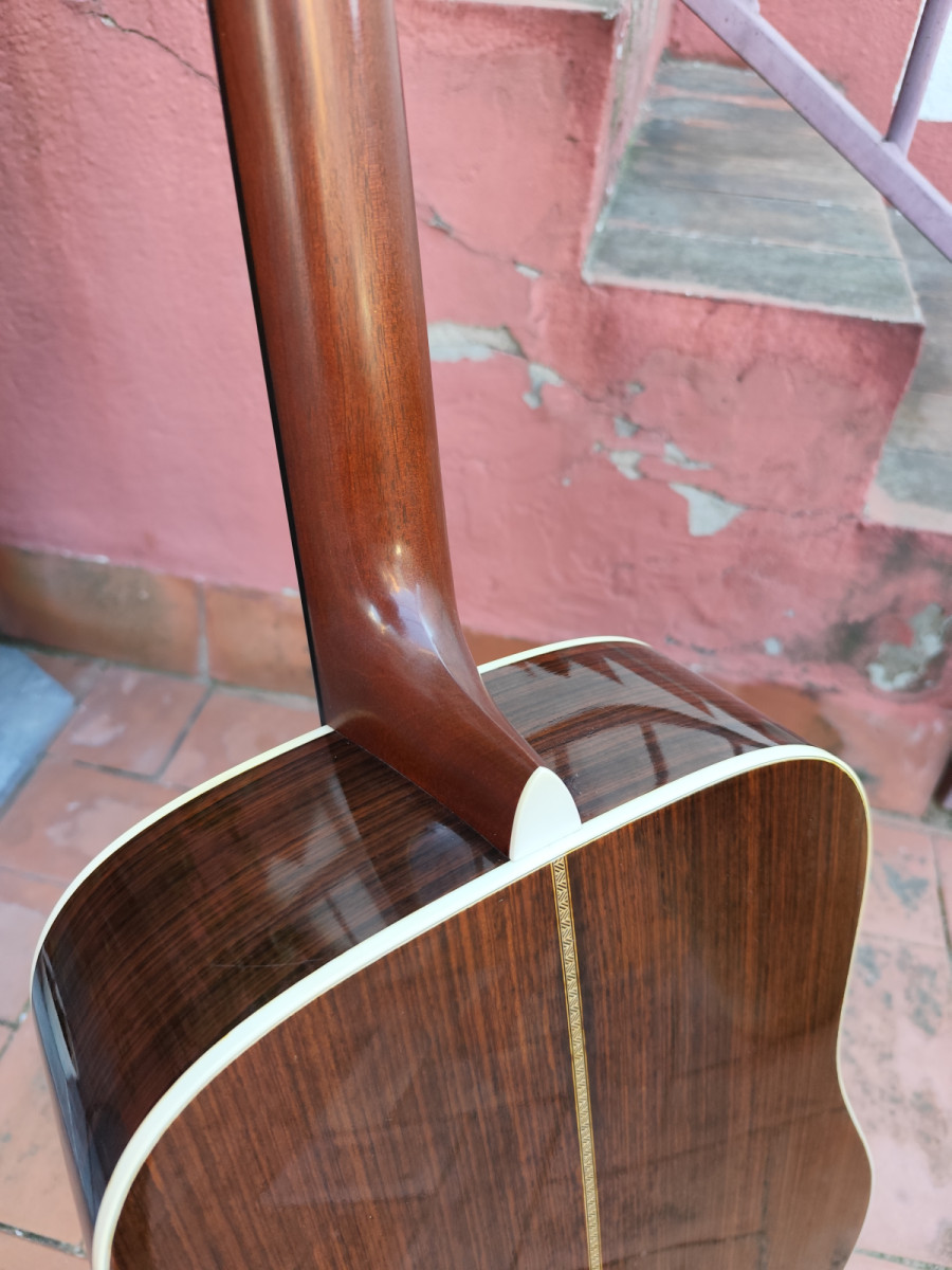 En perfectas condiciones salvo alguna pequeña rayita después de 13 años de vida. Trastes impecables. Incluye estuche original Martín.