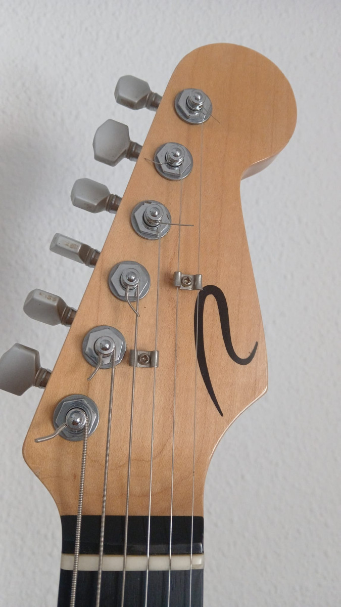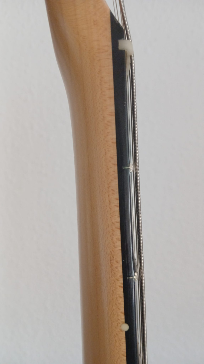 Todos los trabajos realizados en el mástil estan hecho por Ramos Guitars, por eso tiene su logo en la pala. El mástil se encuentra en Barberà del Vallès.