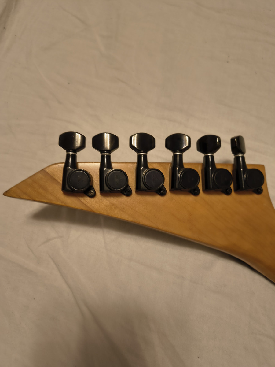 Los tensores del clavijero son unos Gotoh, que son de la misma marca japonesa que los que llevaban el logo "Jackson" que originalmente montaban estas guitarras Made In Japan.