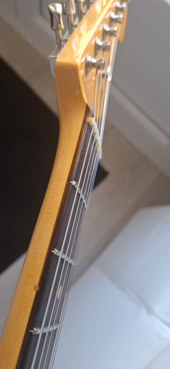 Vendo mástil American Vintage II 62. Comprado en thomann en diciembre del 2025. Cejuela tallada por luthier y tuners fender Vintage, los de la foto son stagered, lo vendo con los normales fender Vintage. El mástil es comodisimo. Radio 7.25 pero se toca genial. Va con la caja original. Esta completamente nuevo. Usado solo como curiosidad. El mastil esta perfecto!!!!