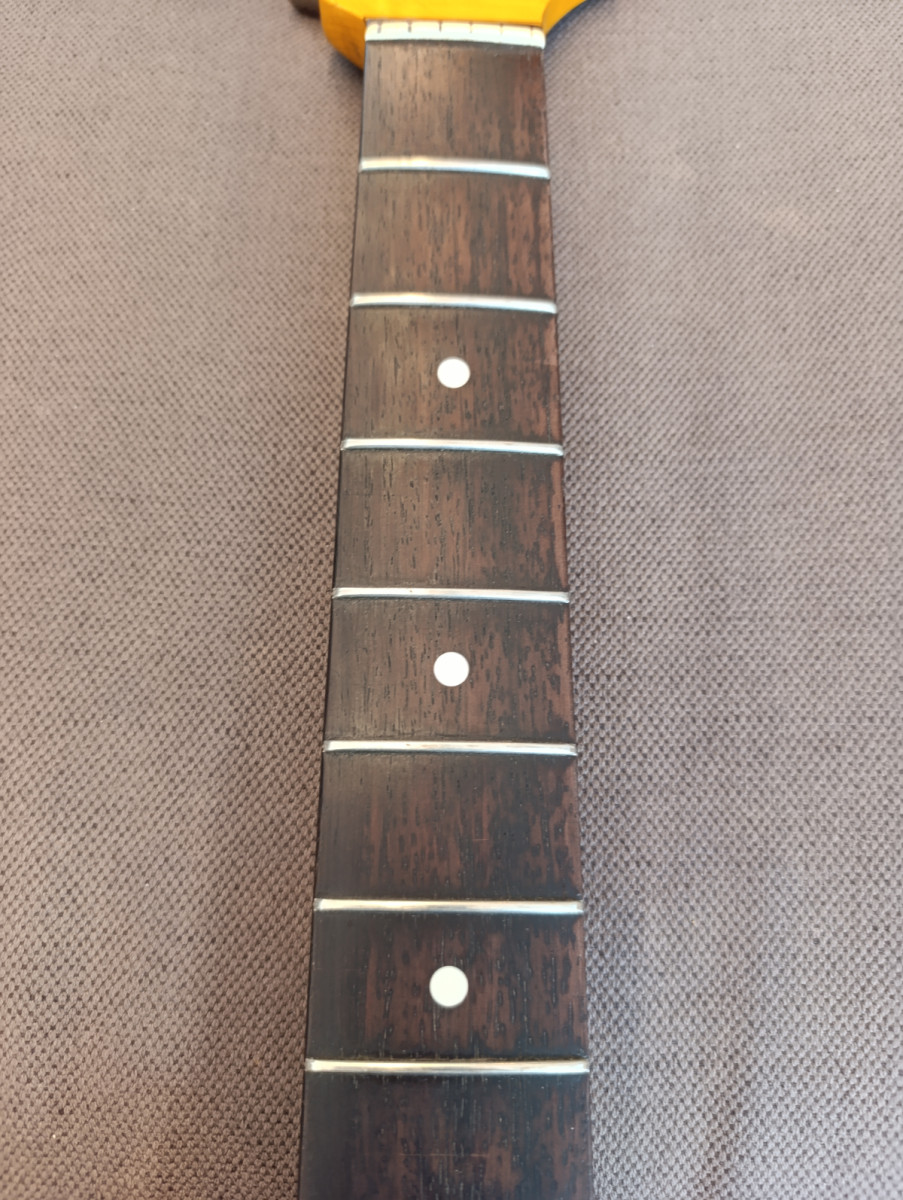 He tenido y tengo muchas guitarras de gama media y alta. Y este mastil es de máxima calidad sobre todo en los trastes que es donde otros más fallan. Solo vendo por ser muy grueso.