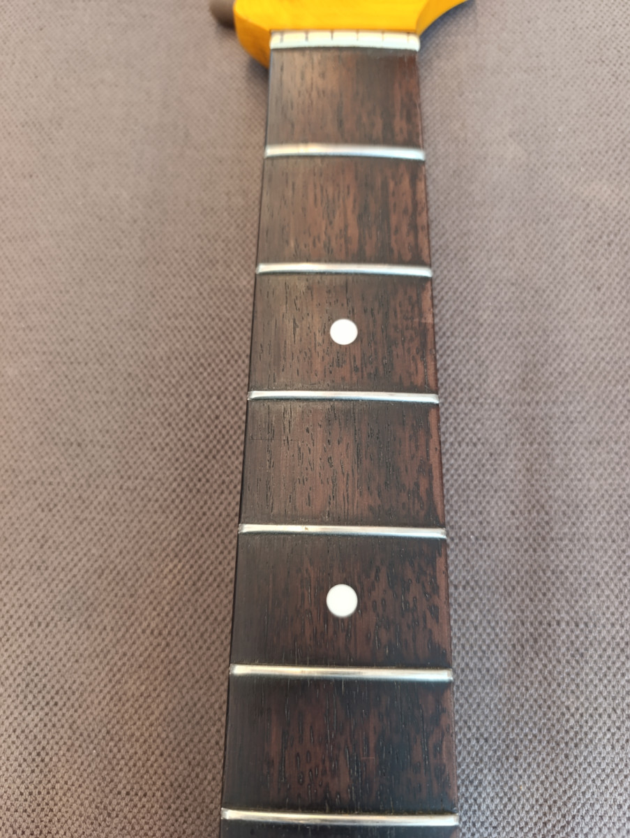 Lo dicho: uno de los mejores mástiles de Rosewood que puedes montar para tu stratocaster, y ya relicado, acabado y listo para encordar. Nivel alta gama que solo vendo por ser demasiado grueso para mí.
