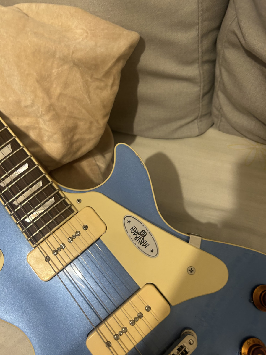 Pues saco esta maravilla dé Maybach les Paul con p90 en color pelpham blue aged relic (en persona es espectacular 😍 nivel R Gibson )