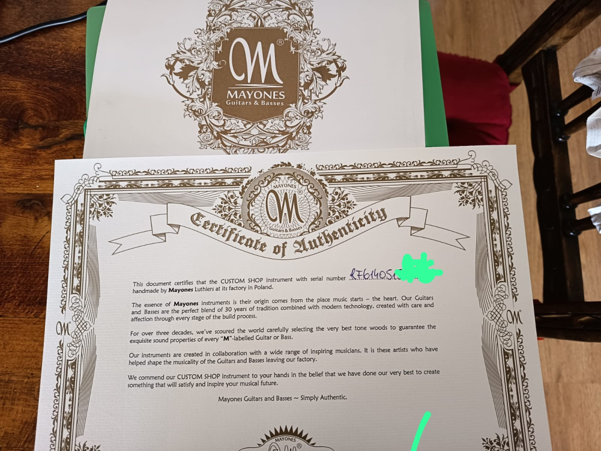 Se vende guitarra Mayones Custom Shop de fabricación polaca, modelo custom certificado, incluyendo el título/documentación oficial que acredita su condición de Custom Shop.