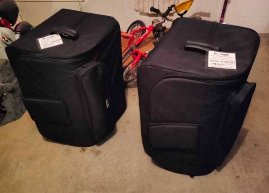 Mesa Behringer Xenyx QX1222USB + 2 altavoces activos 200W the box PA202A+ 2 fundas trolley de altavoces thomann 180328 + 2 Soportes de altavoces + 1 Monitor activo 120W the box MA120MKII.