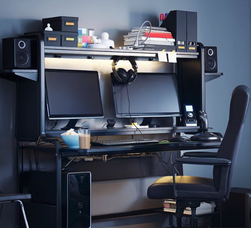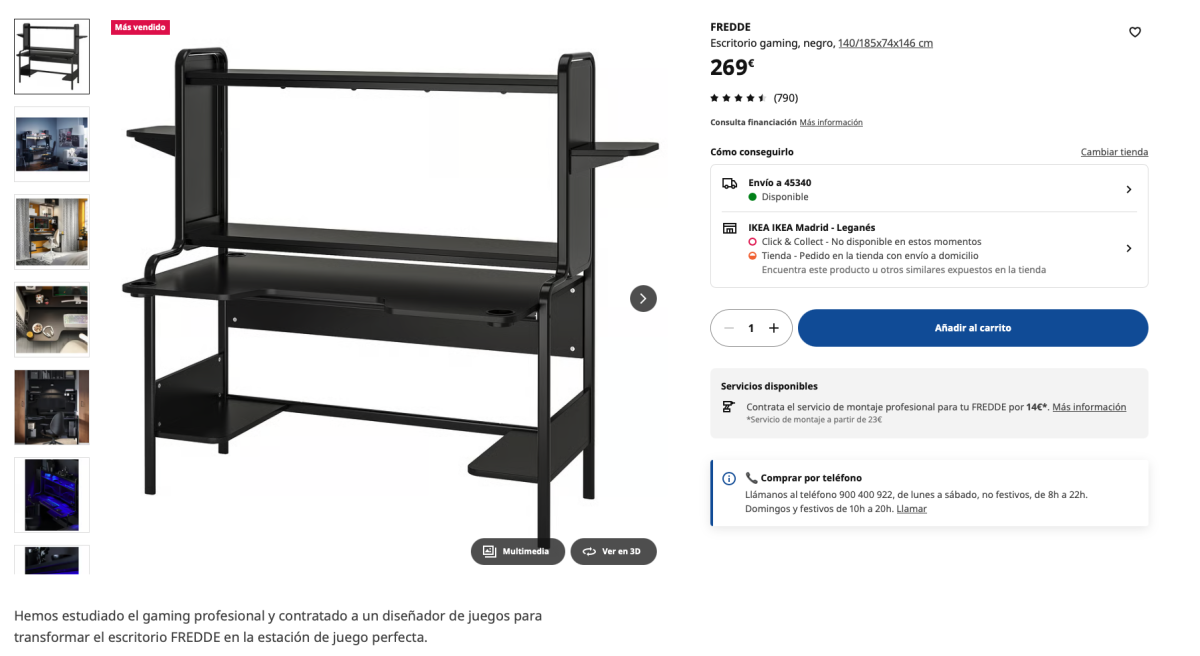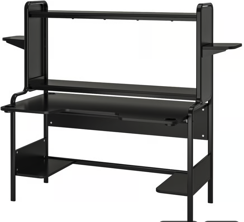 Es un centro de trabajo cómodo, porque el tablero ergonómico permite acercarse a la mesa y apoyar muñecas y antebrazos.Puedes colocar a mano café, aperitivos o bebidas gracias al soporte para tazas que lleva el tablero a ambos lados. Los soportes son de plástico y han sido aprobados para el contacto alimentario.Fija las baldas pequeñas en el interior o exterior de los paneles laterales según tus necesidades.Puedes colocar una pantalla de TV o un monitor de 32” quitando la balda situada sobre el tablero.Los altos paneles laterales bloquean la luz del sol y evitan reflejos molestos en la pantalla del ordenador.Medidas en las fotos. En condiciones totalmente aceptables aunque tiene algún signo de uso. Prefiero entrega en mano, por lo del tema del peso, aunque puedo enviarlo sin problema. Porte a cargo del comprador.