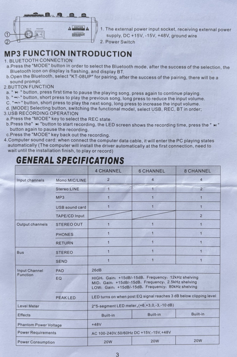 Mesa de mezclas 8 canales y bluetooth EK KT-08 UP