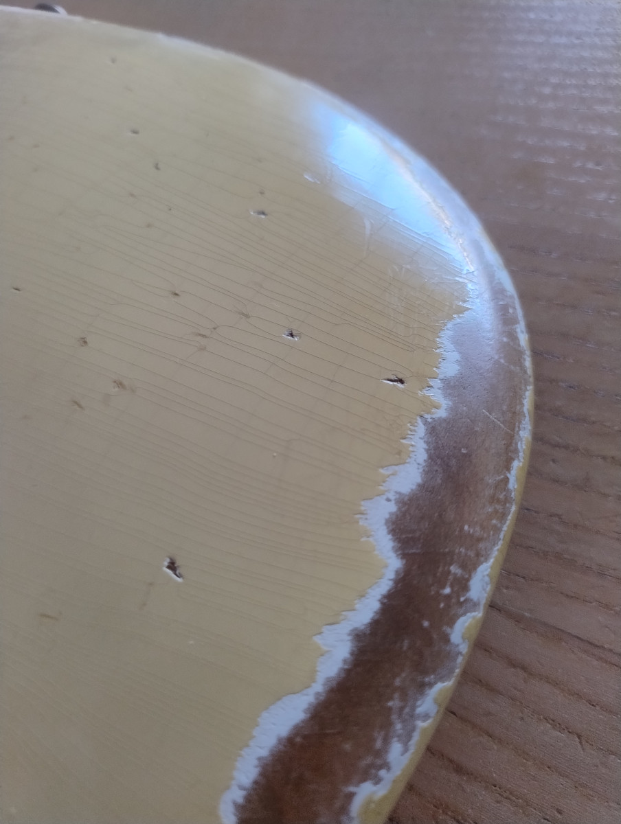 Craquelado precioso y amarilleado. Pintado en Nitro, como debe ser.