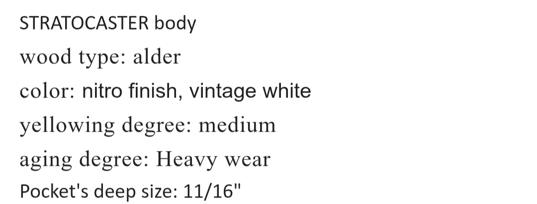Dejo como opcional tanto el puente como el pickguard (precio a convenir), los pedí a la vez que el cuerpo a MJT y están envejecidos igualmente.
