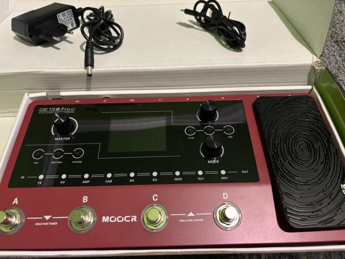Vendo esta pedalera Mooer GE 150 Pro Li en perfecto estado. Tiene poco uso y la bateria esta intacta ya que la he recargado cuatro veces aproximadamente.