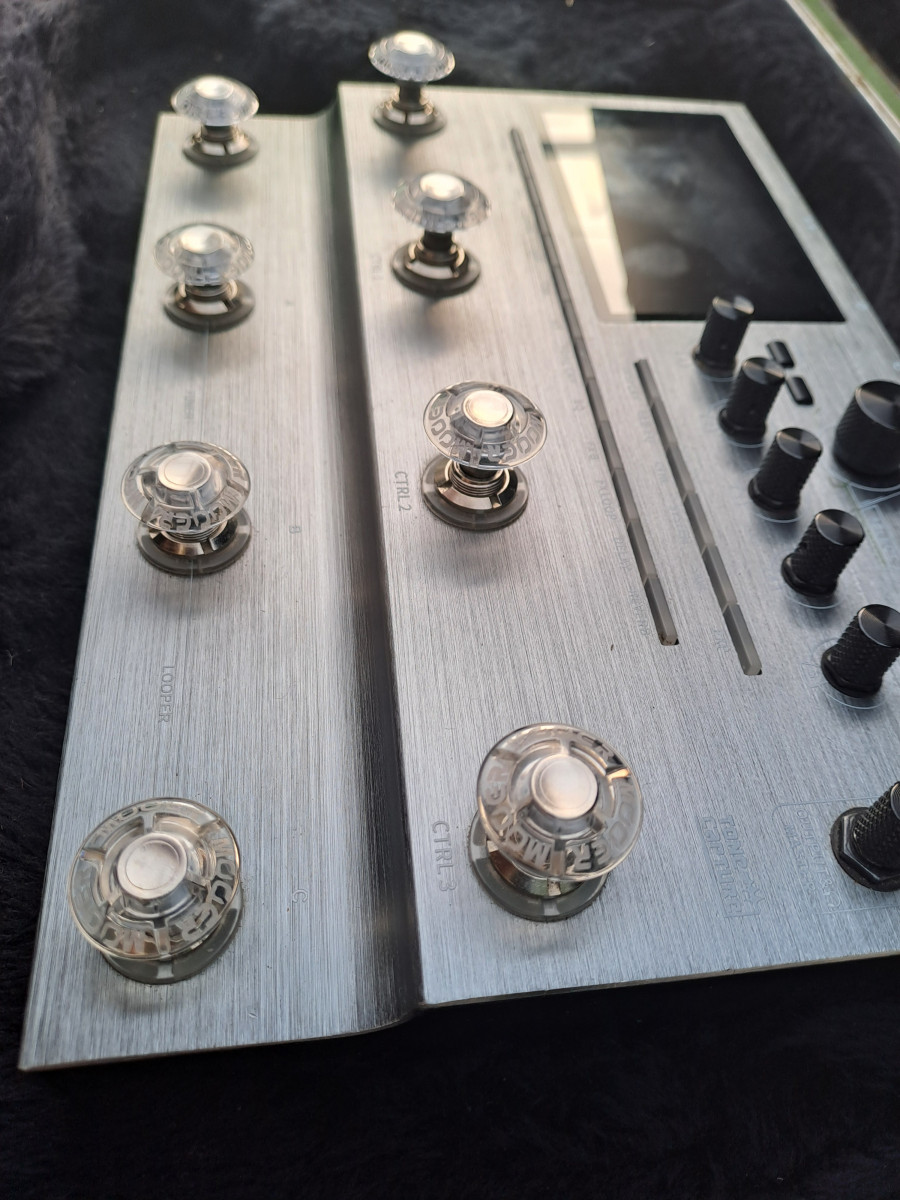 Botones de control de efectos para Comp, Wah, FX A, DS/OD, Amp, Cab, NS, Tone Cap, EQ, FX B, FX Loop, Delay y Reverb