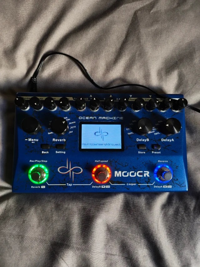 Mooer Ocean Machine en perfecto estado. Es un pedal multiefectos que incluye reverb y dos delays donde se pueden combinar todos a la vez o solo 1 o 2. Tiene looper y capacidad de hacer freeze del efecto. Toda una máquina para guitarrista de ambiente o para cualquier otro tipo de musica.