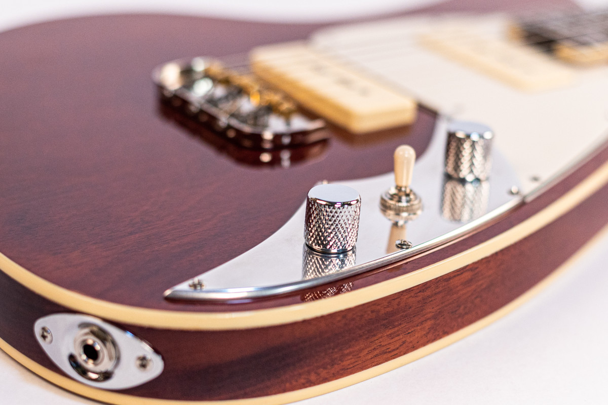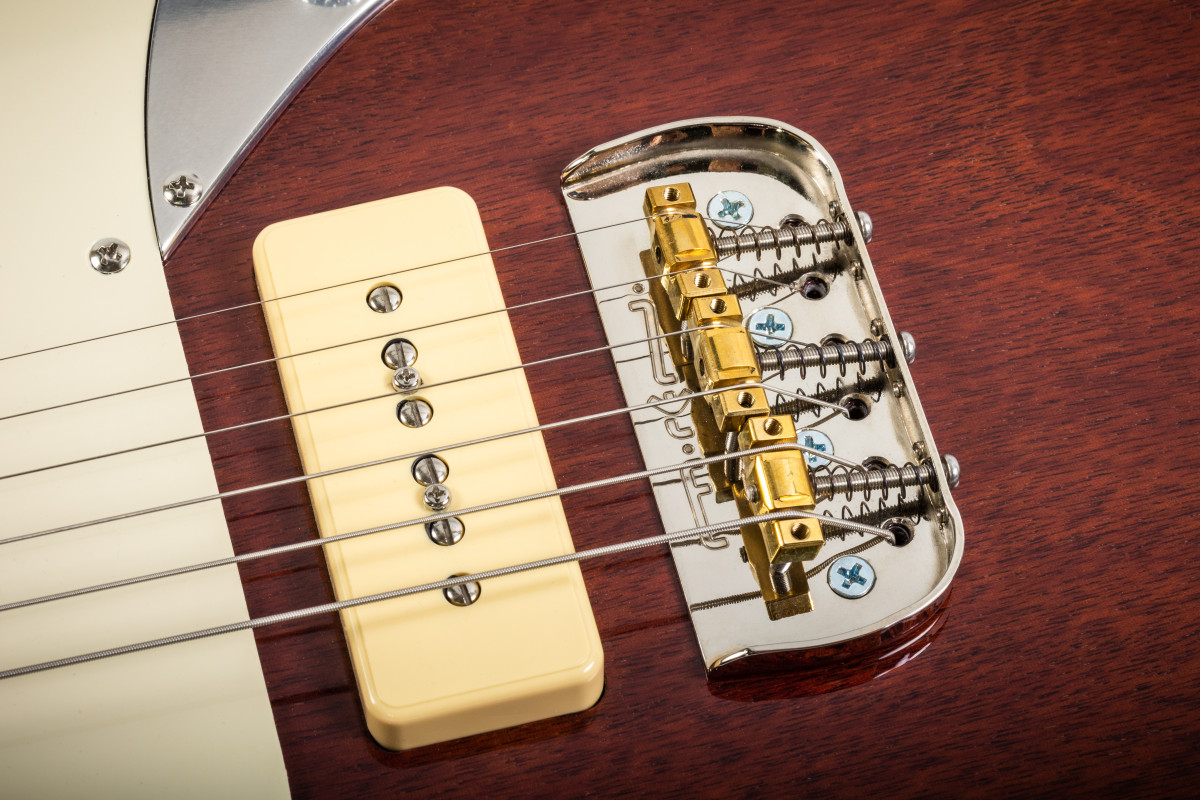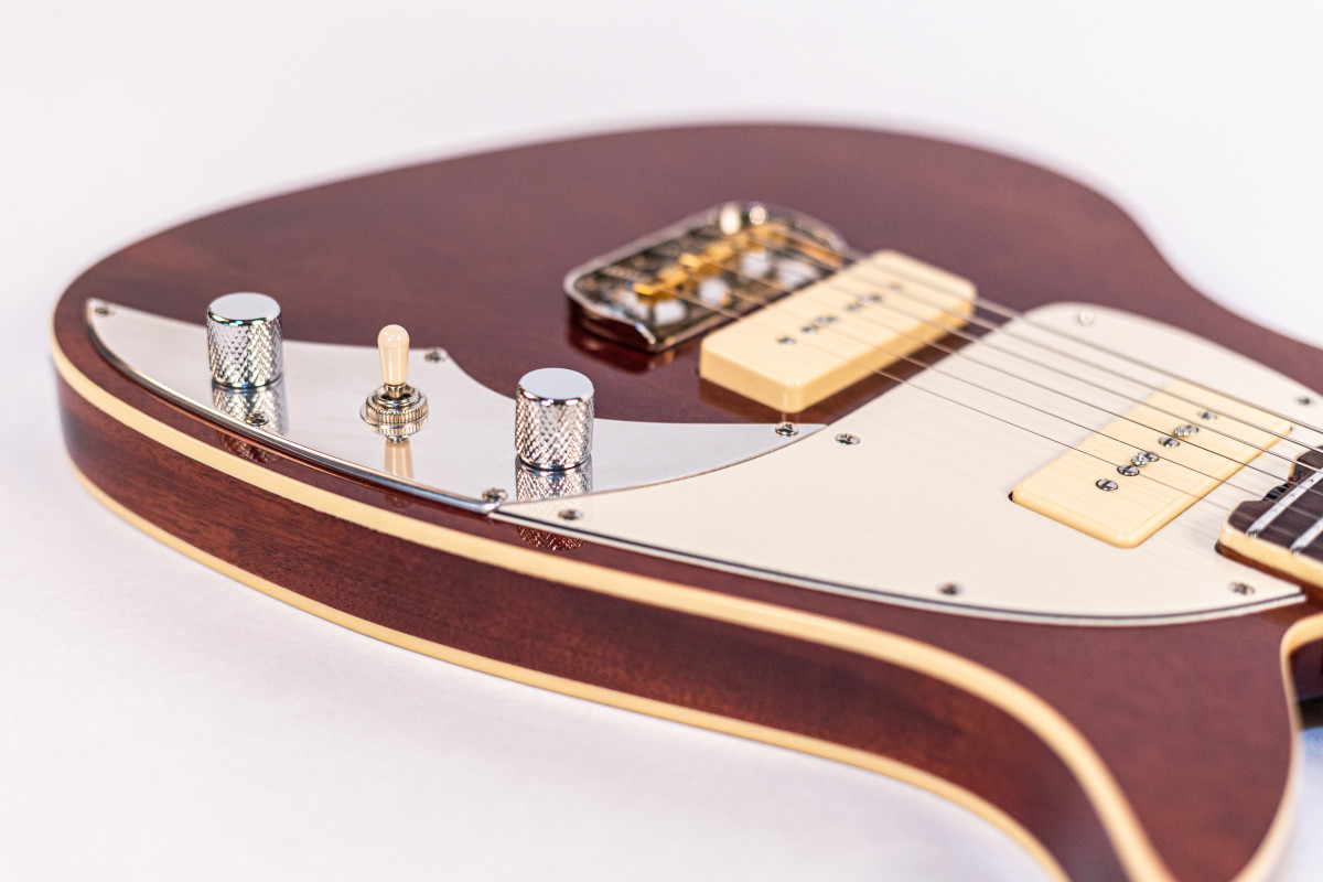 Pastillas p90 de nuevo diseño, bobinado especial, bases de níquel puro, alnico 3 de medida especial también. Super equilibradas, la de mástil no se pasa de grave, la de puente no se pasa de hiriente, son comedidas, llenas de matices, y muy muy silenciosas.