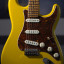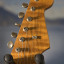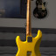 Pues eso, no es una guitarra construida por mi, es un cuerpo comprado y pintado por mi en nitro 100% acabado graffiti yellow muuuuy difícil de ver en Fender, completamente crackelado pero sin dings ni marcas (ya se las harás tú cuando toque...) y mástil de arce tostado flameado radio 9.5 perfil C fino, acabado en nitro satin, trastes medium jumbo (2.7mm) nivelados, con las puntas semiesféricas y bien pulidos, cejuela de hueso a medida. Todo el hardware es Gotoh aged nuevo (clavijeros, placa de mástil, placa de jack, string tree...), excepto el puente que es Vegatrem, y los enganches de correa, que son Gotoh sin relicar (no tenían en stock en ese momento). Las pastillas están bobinadas por mi y son una recreación de un set de pastis de Fender Custom Shop que tuve y que me gustaba mucho como sonaban, van con hilo plain enamel de este moradito chulo y suenan como la mejor strat que pudiéses soñar