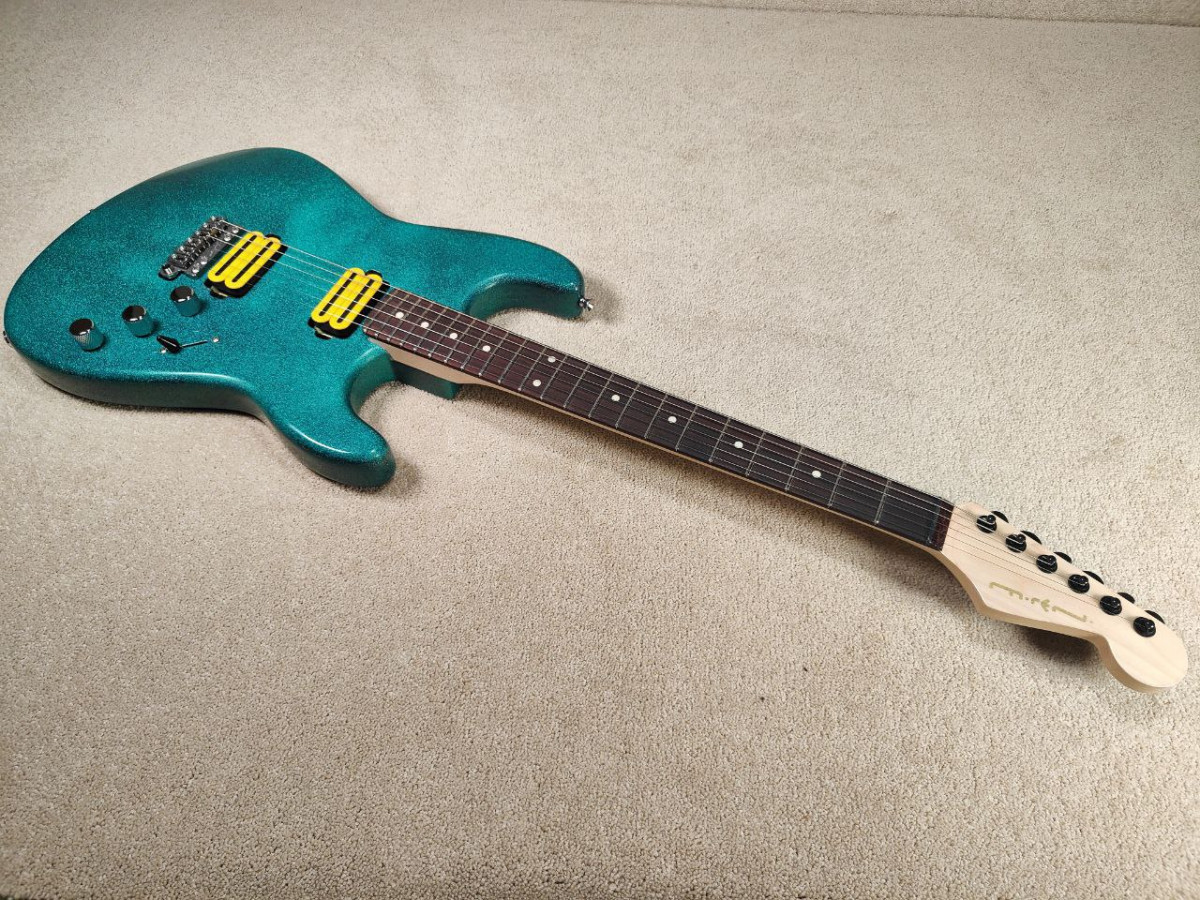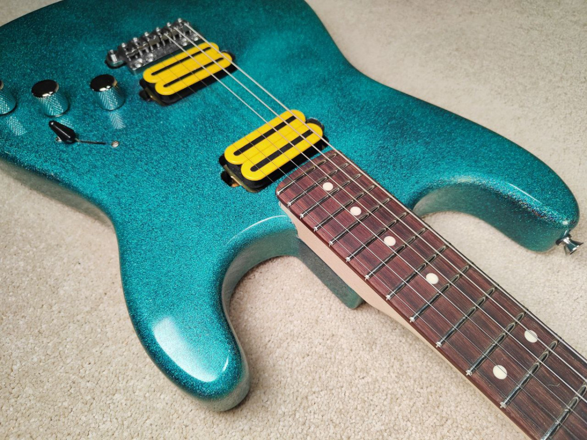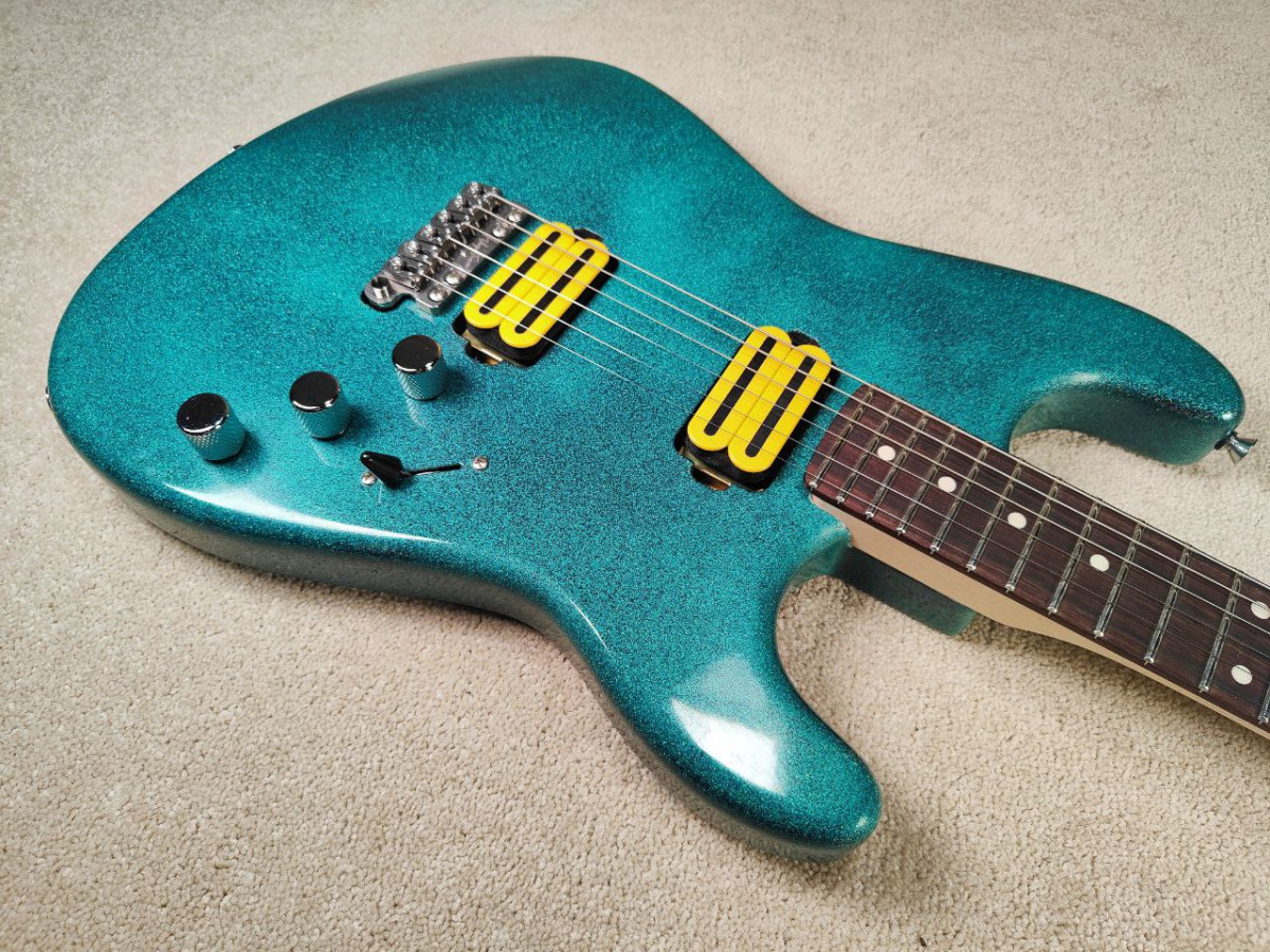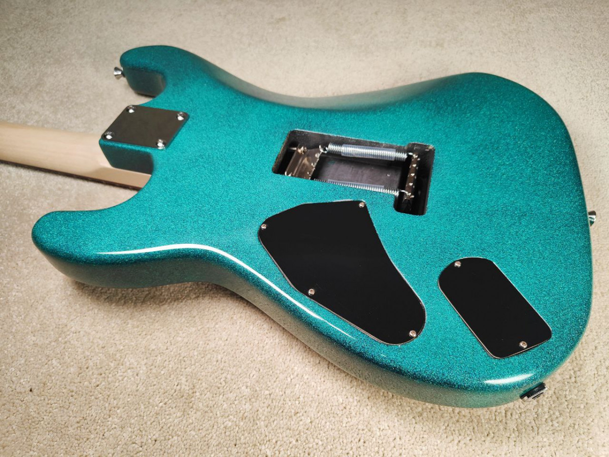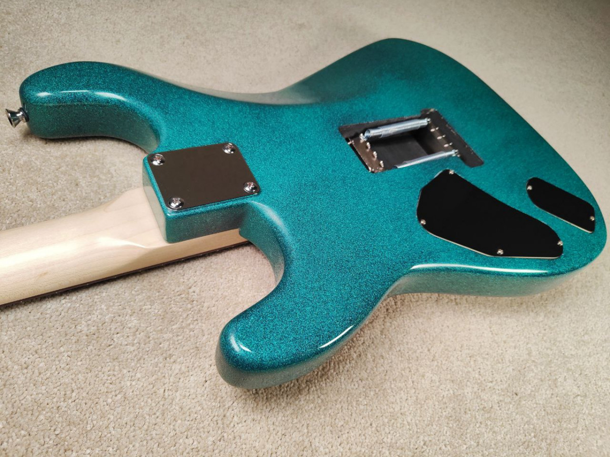 Todos los componentes y partes son nuevos. En el taller he lacado mástil y cuerpo, le he dado al cuerpo un acabado sparkle turquesa que en persona mola bastante más, he usado una purpurina que saca diferentes tonalidades de azul y mola bastante. Se han pulido los trastes, ajustado la cejuela, hecho la electrónica desde 0, las tapas, y ha quedado un instrumento perfecto en todos los sentidos, con un ajuste bajísimo, sonidazo y la voy a sacar a un precio bastante contenido, el primero que se anime se lleva un caramelín...