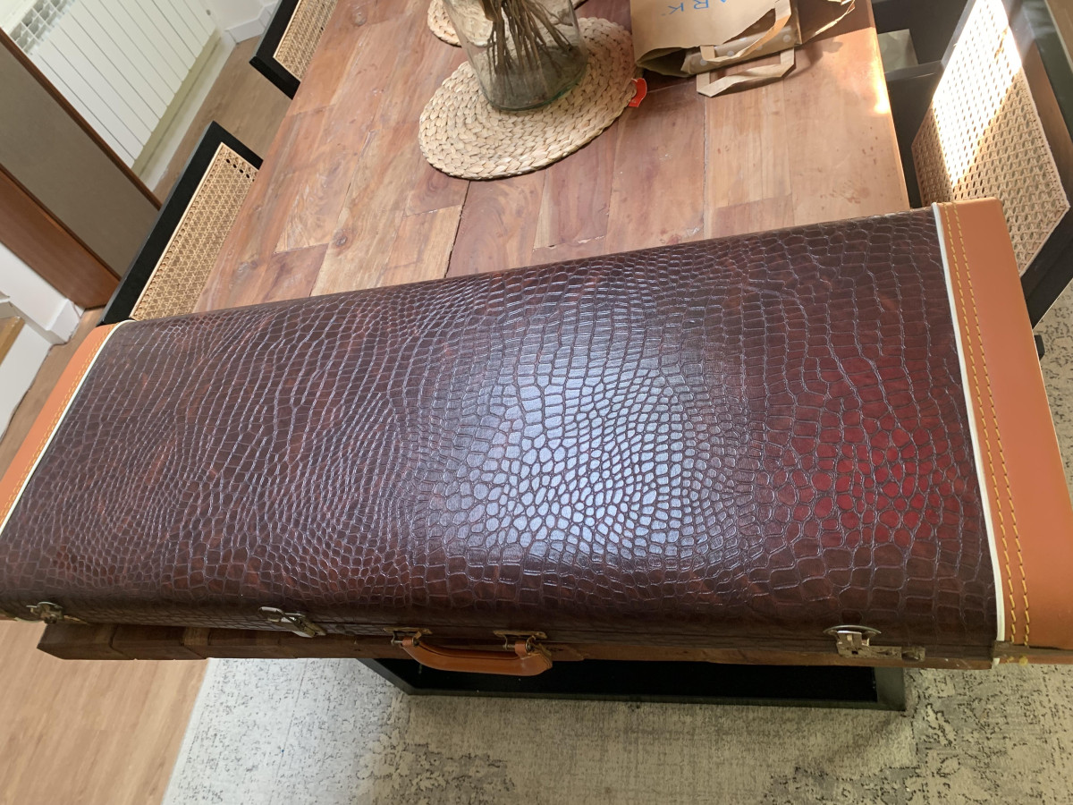 Estuche de tolex "cocodrilo", pero no es el original.