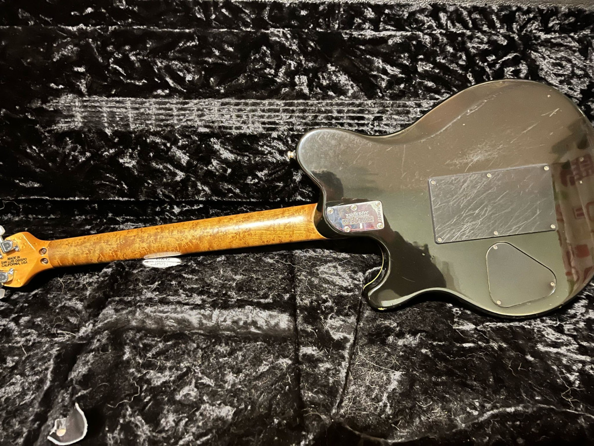 La guitarra tiene signos de uso, como el puente desgastado( no afecta en nada al sonido) algunas marcas en el cuerpo etc, nada grave en absoluto, si buscas una guitarra nueva está no es.