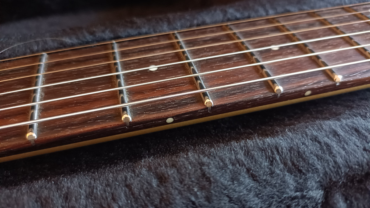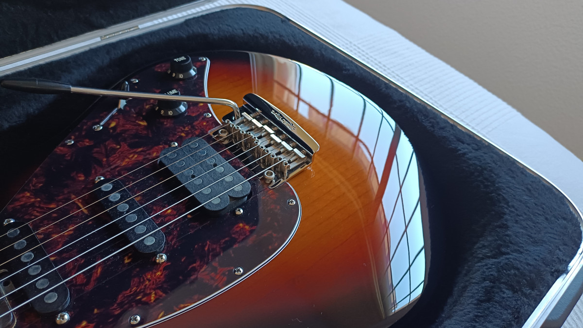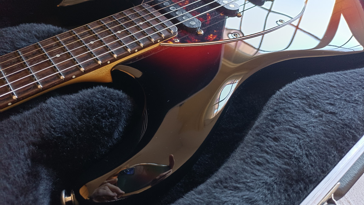 Tiene modificaciones, pastillas Tom Anderson H2+ y SF1, trastes Jumbo de acero, radio 10,16, en estado impecable.