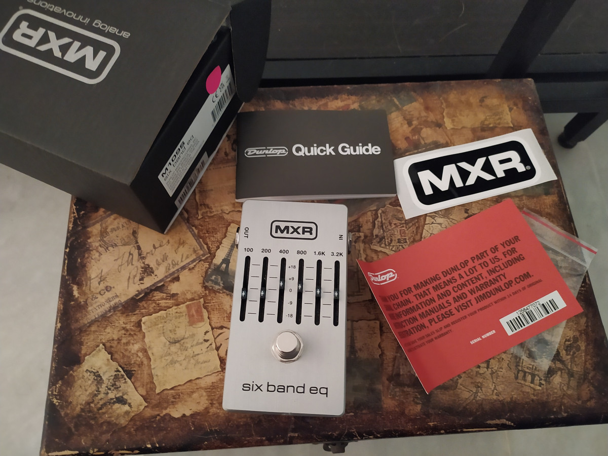 El ecualizador de 6 bandas de MXR es un complemento ideal para cualquier pedalera. Permite moldear el sonido total con bastante sensibilidad, Yo lo he usado, sobre todo, para retocar un poco el sonido de algún pedal de overdrive al que quería rebajarle medios-agudos. Añade una leve compresión que hace que también sea útil sobre limpio con los 6 controles planos. Cero ruidos. Comprado en tienda el pasado diciembre, así que está completamente nuevo. Lleva velcro en la trasera.