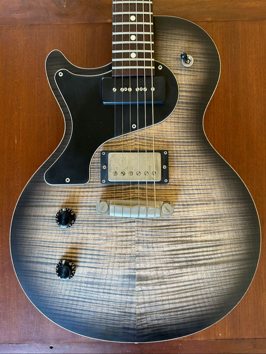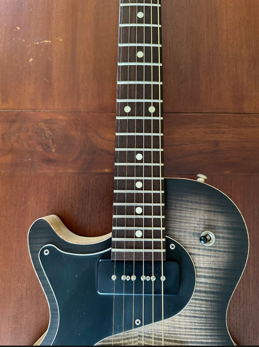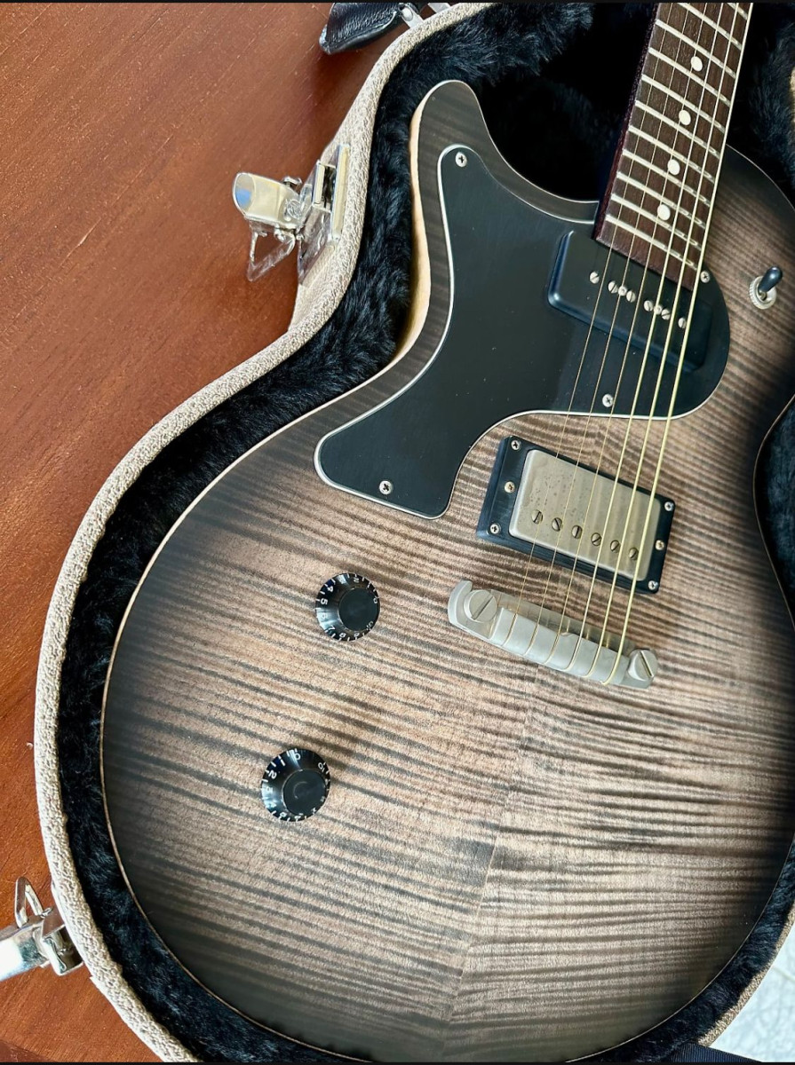 Guitarron ...del luthier aleman de renombre nik huber..se trata del modelo krautster II..pastillas hausell,humbucker en puente y p90 en mastil..cuerpo de korina,acabado en charcoal burst...diapason rosewood y flame maple...es una custom order...calidad nivel dios...del 2016...las fotos no le hacen justica..no soy buen fotografo..ni tengo buena camara...pero es espectacular...