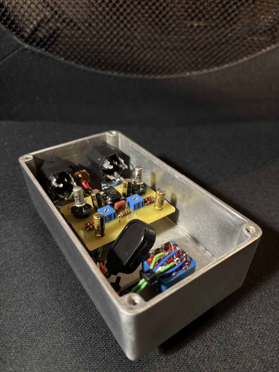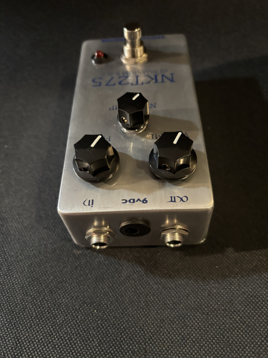 Conexion a corriente centro negativo, vamos cualquier tanque o adaptador corriente, el original solo va con pila. resistencias metal 1%, condensador panasonic, electroliticos gold edition, potes alpha.