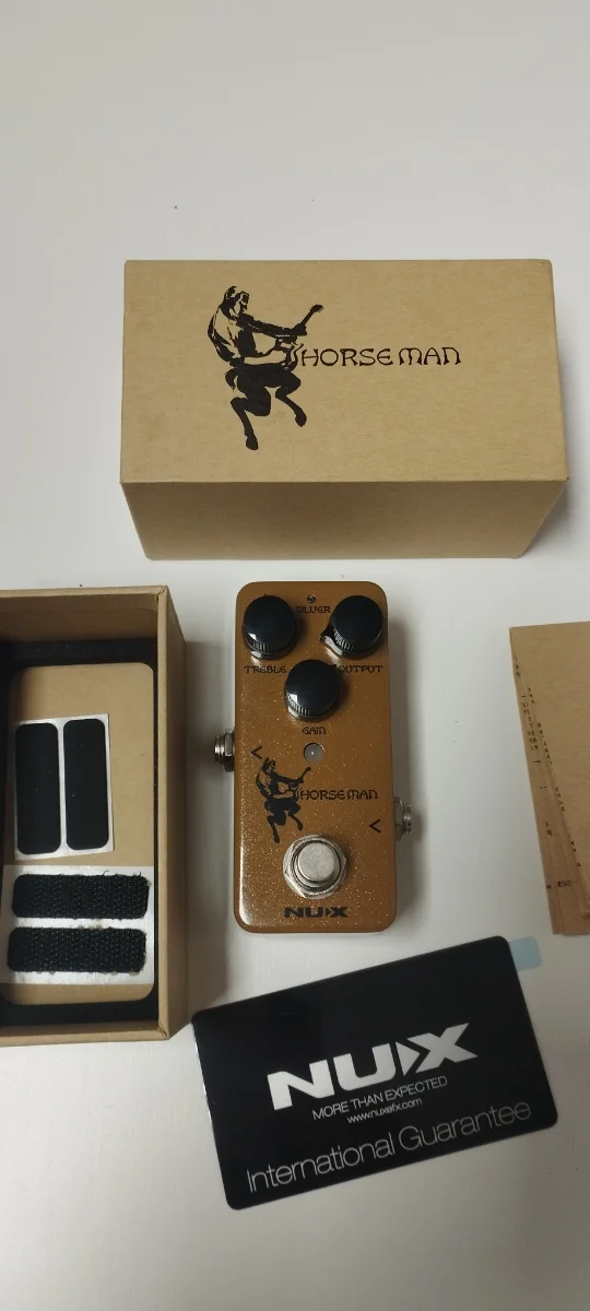Pedal de efectos Nux Horseman, un clon del famoso Klon Centaur. Está en excelentes condiciones y luce impecable. Lo vendo con la caja y elementos originales.