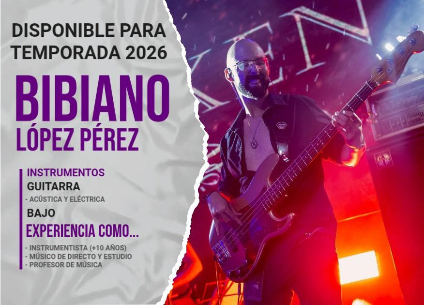 Músico disponible para la temporada 2026 🎸, amplia experiencia en directo y estudio. Busco proyectos serios y solventes que valoren la profesionalidad y buen ambiente.