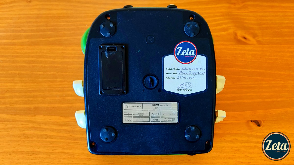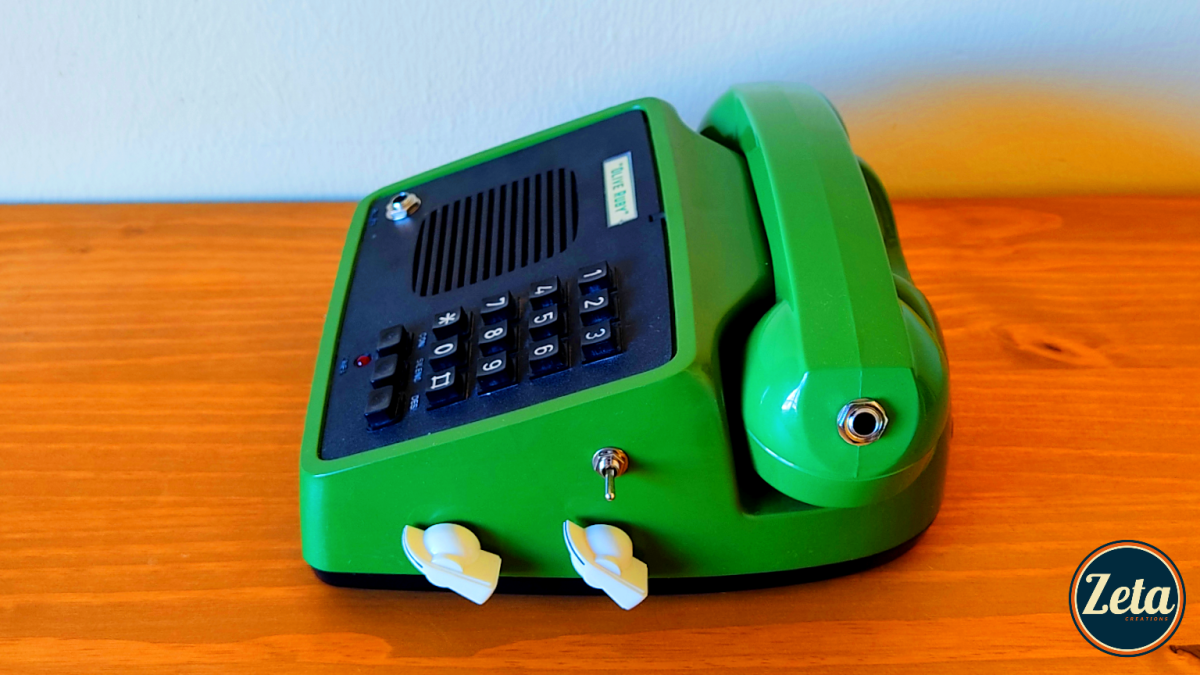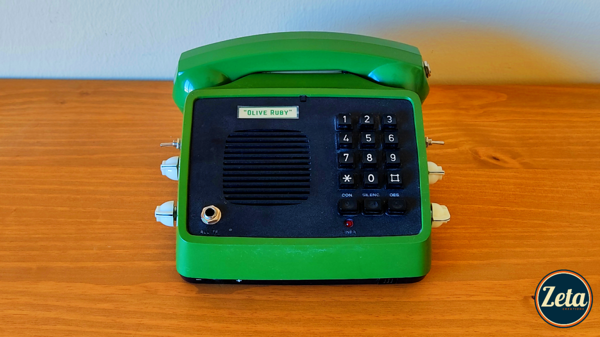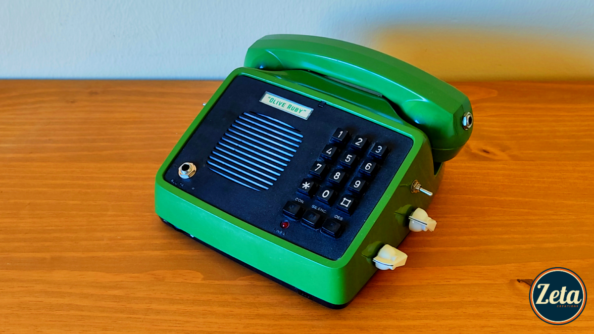 El "OLIVE RUBY TC" es un teléfono vintage de los años 80s convertido en un amplificador portátil! El amp posee controles de volumen y ganancia y también tiene tremolo incorporado con controles de velocidad e intensidad! y eso no es todo! el tubo del teléfono es un micrófono!