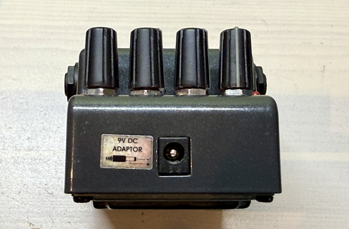 Pedal de distorsión de alta ganancia. Carcasa de Metal. Funciona con pilas o fuente de alimentación de 9V. Se envía con caja e instrucciones.