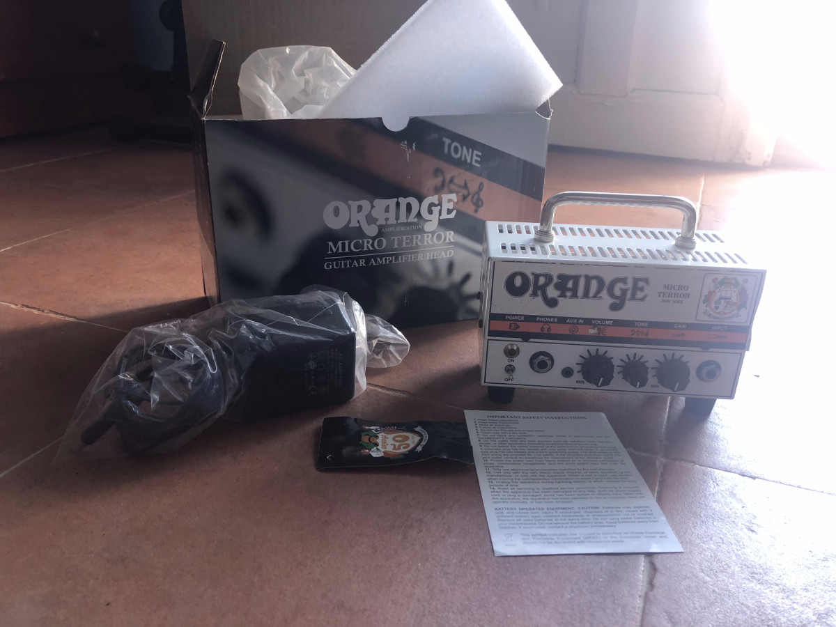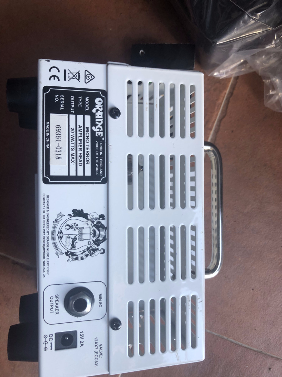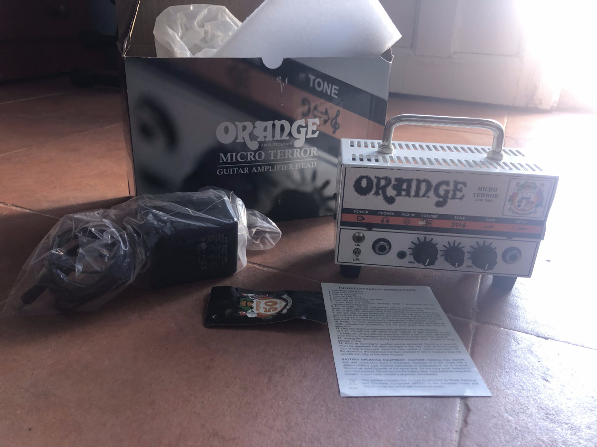 Vendo un Orange Micro Terror en perfecto estado de funcionamiento. El adaptador de corriente no es el original, ya que es muy endeble y se estropeó el cable. Busqué otro que funciona igual y de mejor calidad.