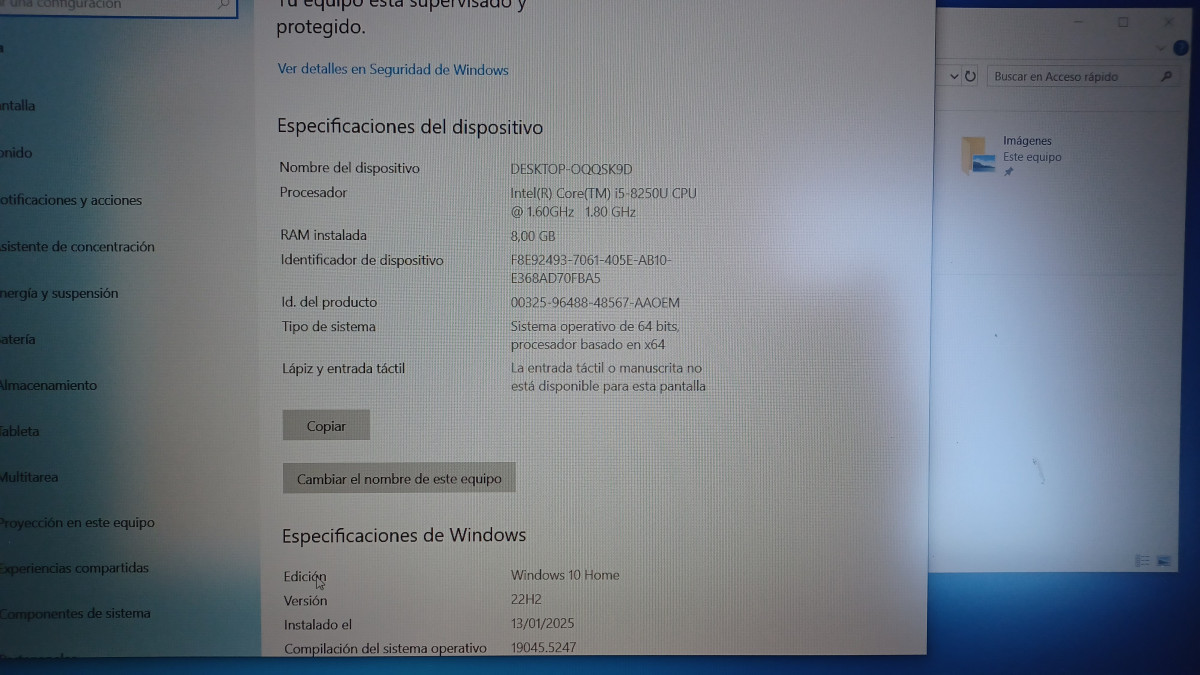 CPU (Procesador): Intel Core i5 8250U 8ª Generación. 4 nucleos 8 Hilos. 1.6GHz a 3.4 GHz.