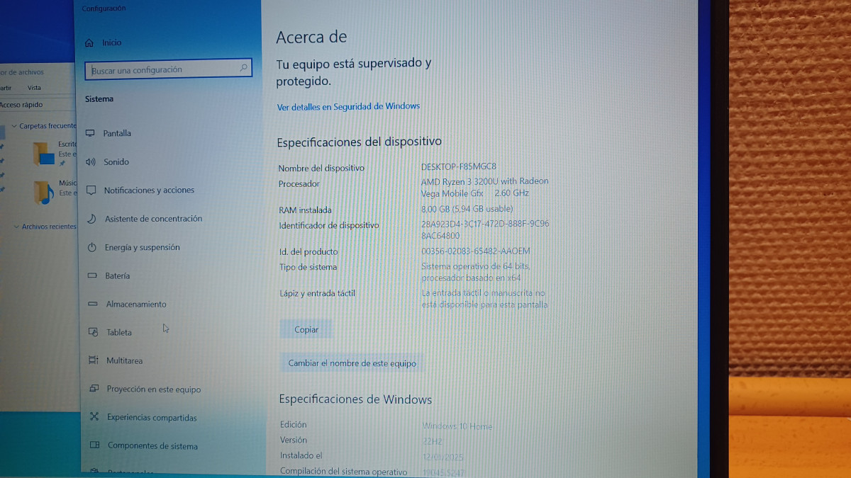 Modelo Lenovo Ideapad S340-15API. Procesador AMD Ryzen 3 3200U con gráficos integrados Radeon Vega. Pantalla 15.6 pulgadas antirreflejos FHD 1080. Ram de 12GB DDR4. 250GB M2 PCIe.