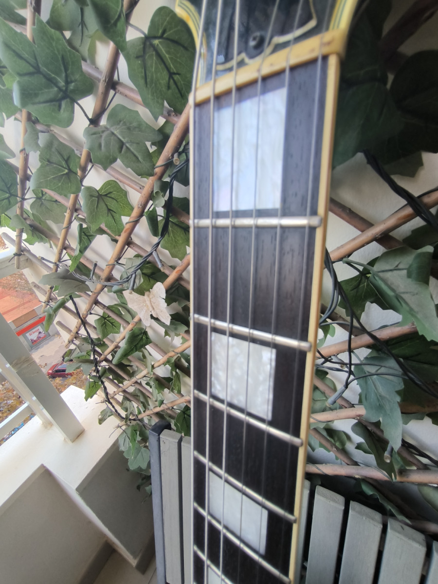 Estado muy bueno, sin roturas ni nada raro, trastes al 70%, peso 4.4kg y todo original ¡guitarrón!