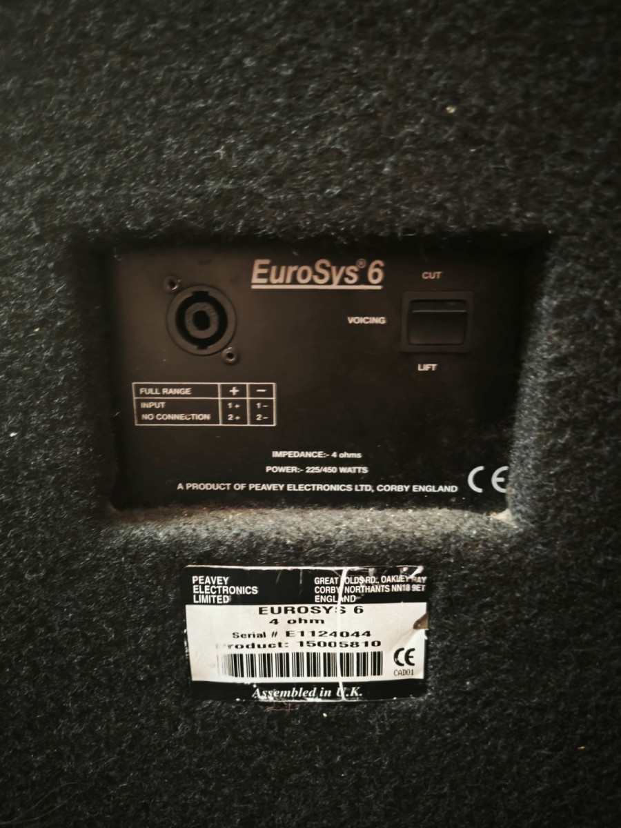 Se vende PA. Conjunto de 2 altavoces Peavey Eurosys 6 de hasta 450Watts en buen estado. Son ideales para eventos y conciertos. Con sus soportes para montarlos como columna. Solo entrega en mano en Zaragoza. 615555578