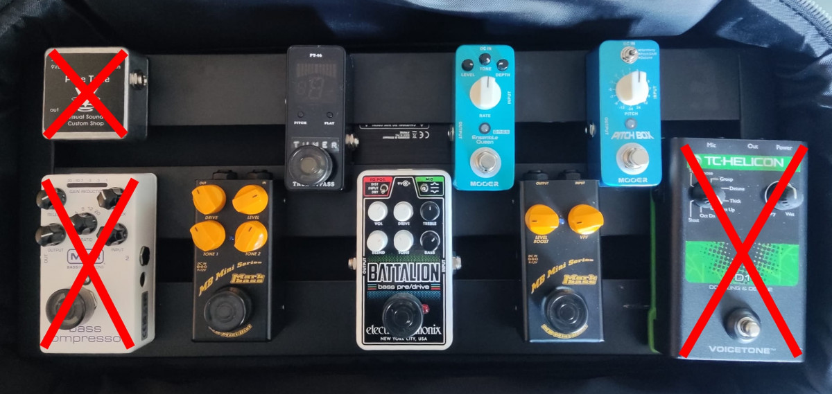 / Distorsión / Sintonizador / Preamp-Drive / Bass Chorus / Bass Boost / Pitch-Detune-Harmonizer/