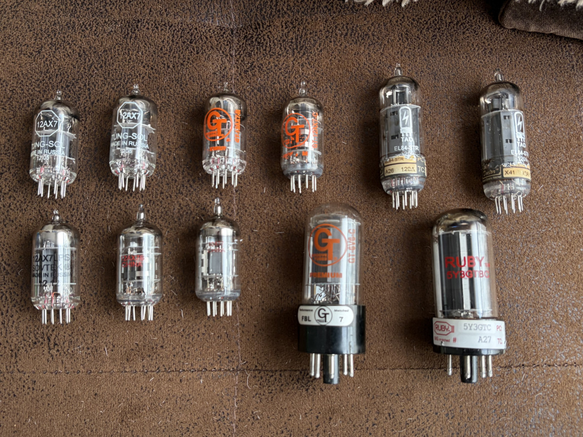 A la venta estas válvulas de la fotografía, usadas pero funcionando en perfectas condiciones. 7 12ax7, 2 El84, 1 6v6gt, 1 5y3gt.