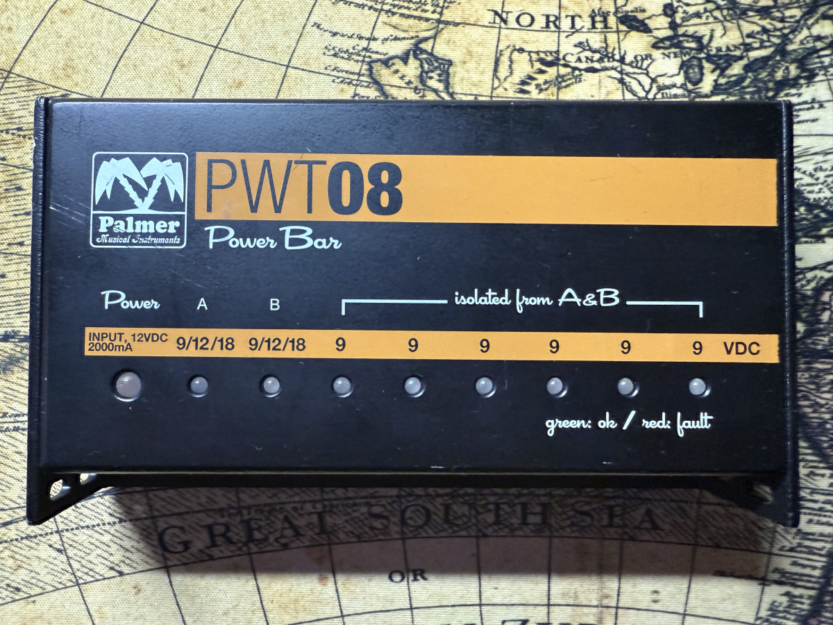 Fuente de alimentación Palmer PWT08 para pedales en perfecto estado de funcionamiento. La entrego con fuente de alimentación original y los 8 cables de alimentación de pedales