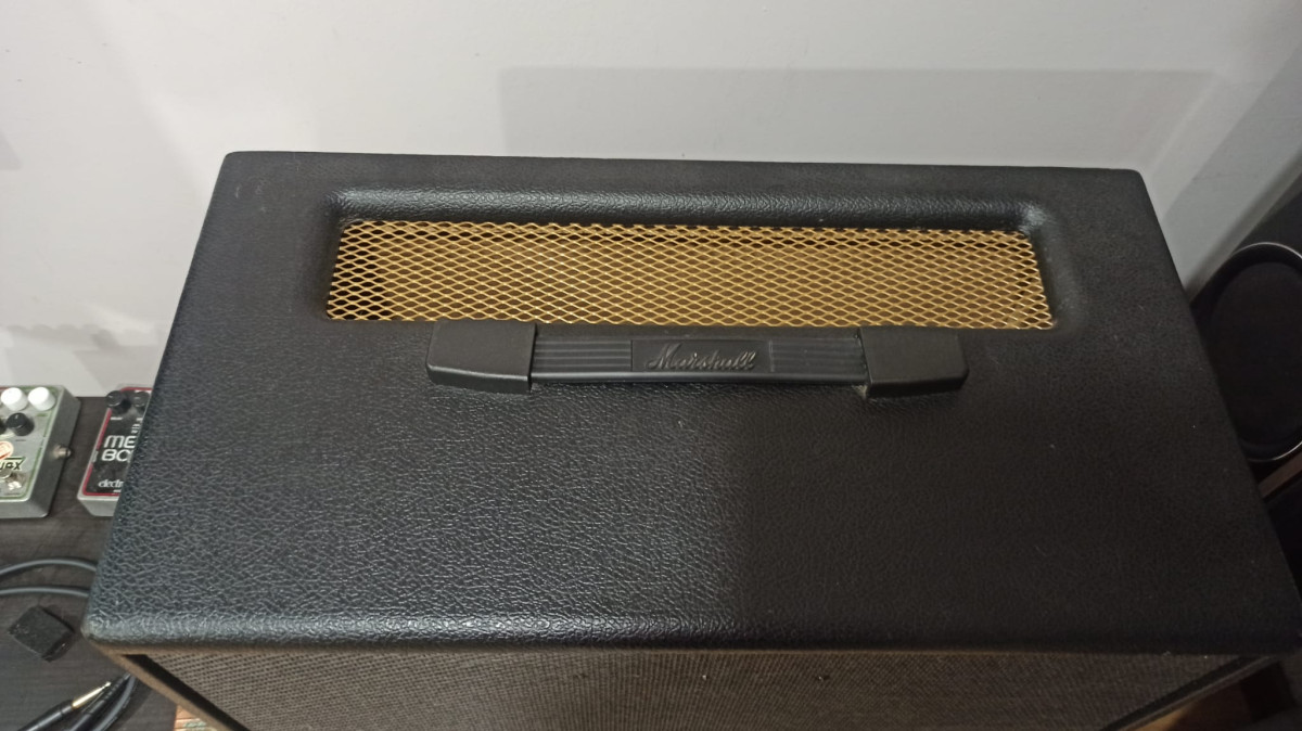 El mueble es de un Marshall Code 50 que se estropeó y se modificó para usarlo como pantalla.