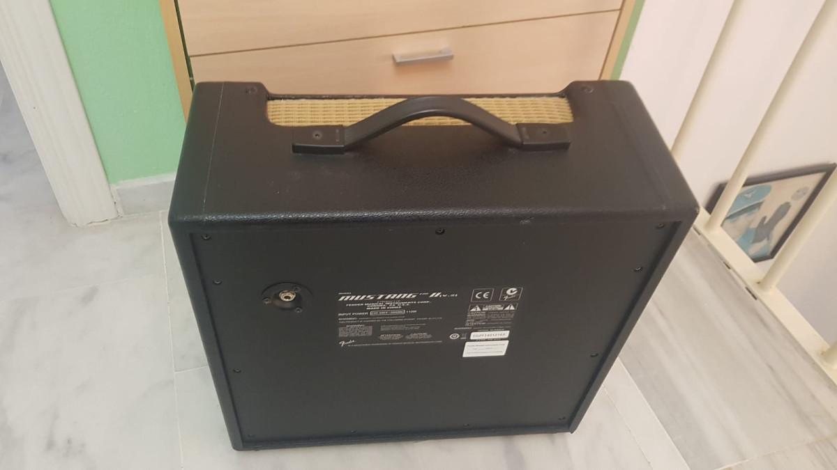 Se le cambió el tolex. Lleva el altavoz que traía el Fender Mustang II.
