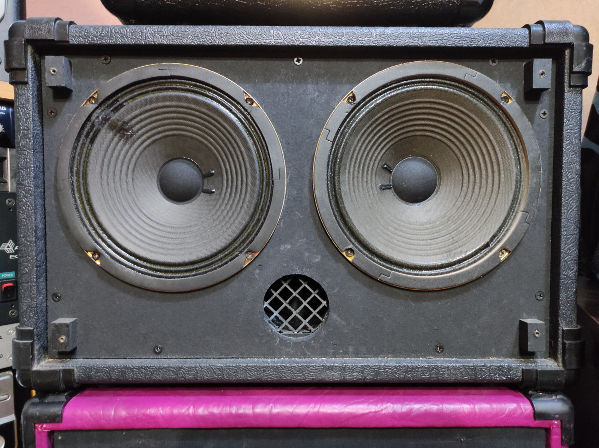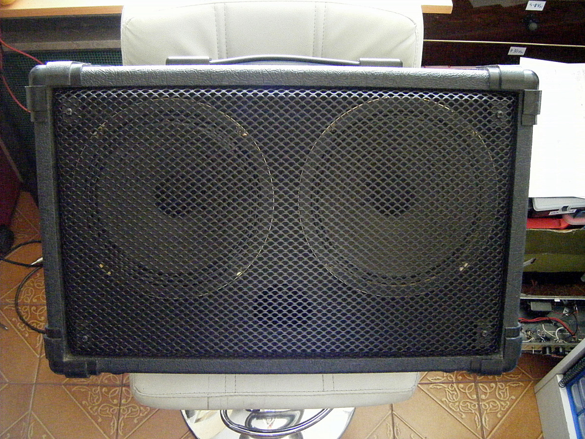 - Dos altavoces de 8" extraidos de amplificadores Hohner "Rockwood" de los 80 y Behringer VT-15 de los 90 (dos de los mejores 8" que he catado). La respuesta en graves es buena para su diámetro (con el bass-reflex es suficiente para casa sin hacer retumbar las paredes) y los agudos no son estridentes.