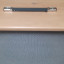 Pantalla artesanal en madera de Abeto finlandes 18mm, acabado color Roble Satinado tela acústica color Plata,cantoneras metálicas, asa retráctil metálica, tacos de goma negra y copela metálica con entrada de jack md:52x42x26 ps:8,2kg. Portes incluidos a la península.