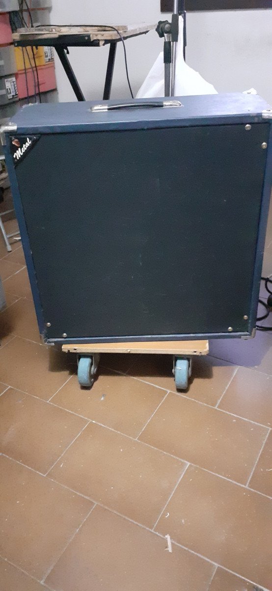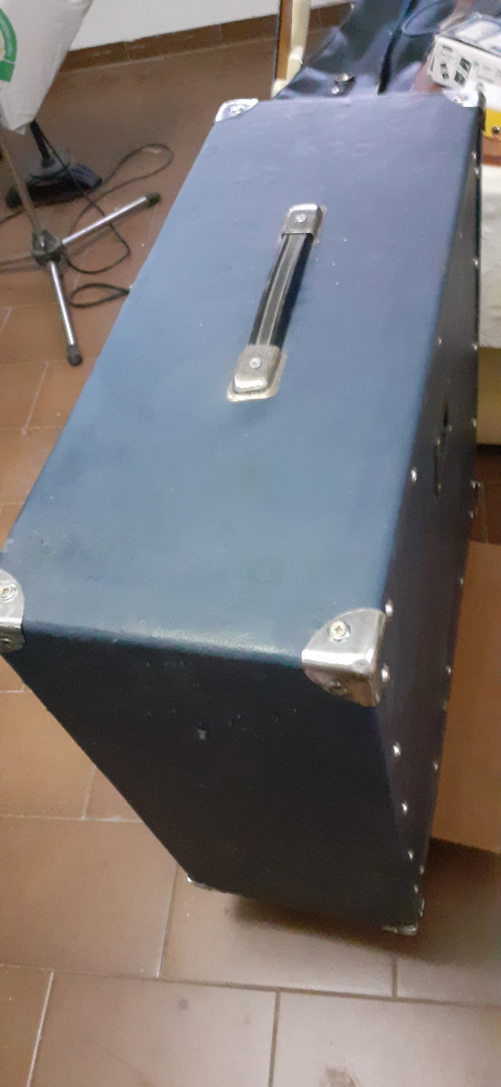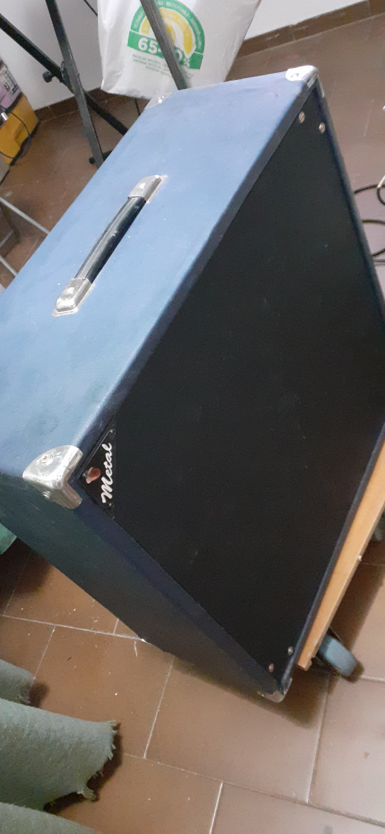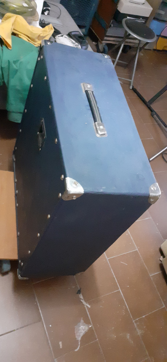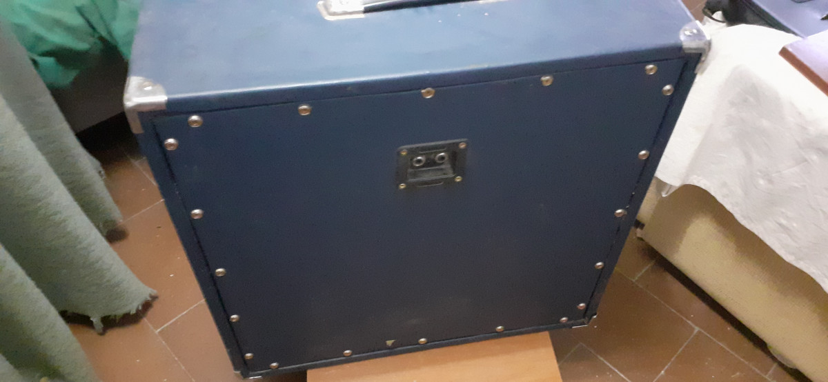 Pantalla artesanal con tolex azul tela acústica negra. Lleva dos altavoces chinos de simulación, de 12" 50w.a 4ohmios cada uno. Impedancia final 8ohmios x 100w muy buena relación calidad/ precio suena bie y tiene caña md:62,5x62,5x26 ps"18,3kg. Con altavoces. Estudiaria posibilidad de cambio.con altavoces o vacía. Vendo con altavoces por 110€ y vacía por 80€. Mira en mis anuncios. Tengo cosas curiosas.